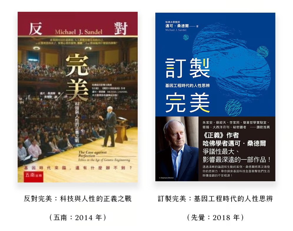 家軒主編提的這個例子非常令我吃驚,對於說明出版社如何包裝選書也再貼切不過。同一本書在台灣版權易手,兩家出版社先後採用不同的思維去「訂製書名」。無關乎好壞,卻可能面向截然不同的群體。如何在有限的字數裡頭,塞進關鍵字,是場資訊平衡的拉鋸戰。
