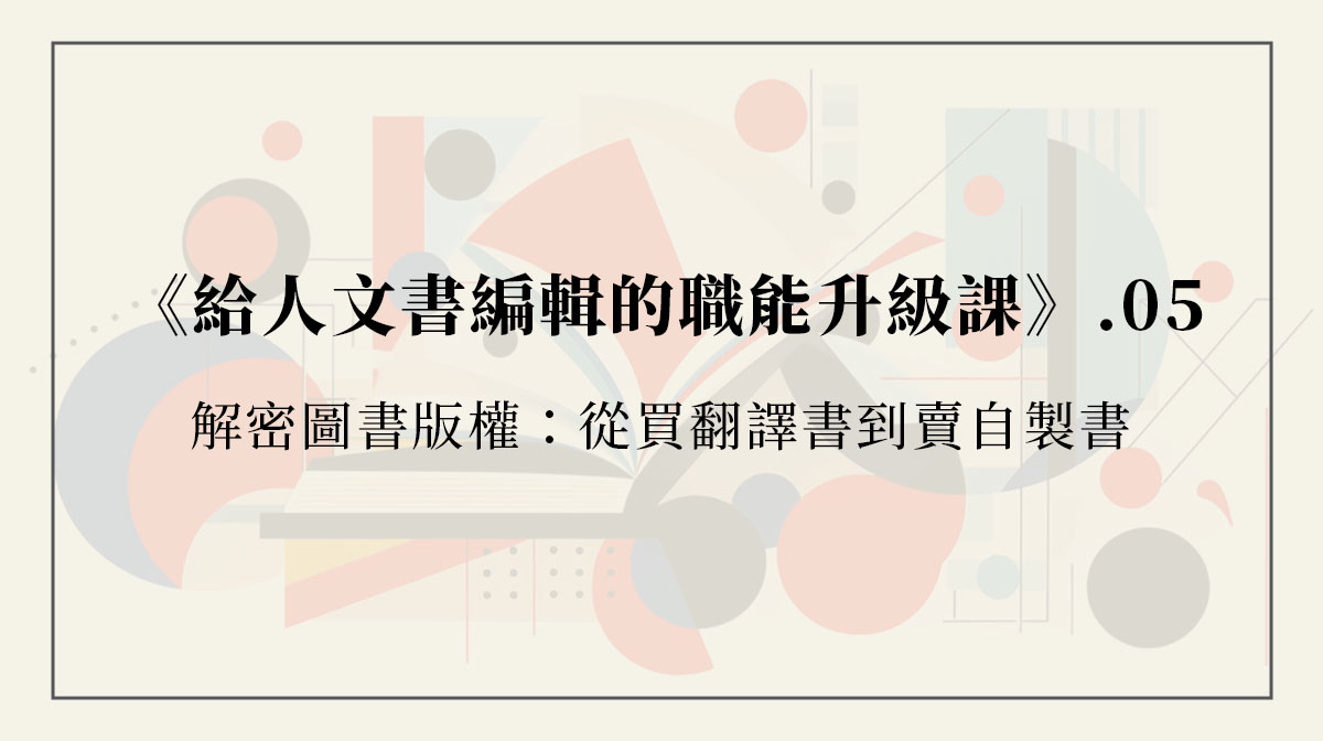 本系列筆記為觀看《給人文書編輯的職能升級課》線上課程隨堂筆記。本套課程為文化內容策進院主辦的一系列進階編輯講座與課程,如對相關課程有興趣,建議主動關注文策院或光磊版權的FB唷!